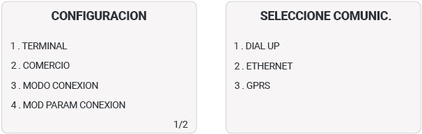 Desde el menú comercio, acceder al menú 2/2 con la tecla Enter (verde).