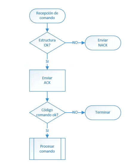<ACK>vuelve al inicio a esperar un nuevo comando, para el caso que recibe un<NAK>vuelve a enviar la respuesta 2 veces más.